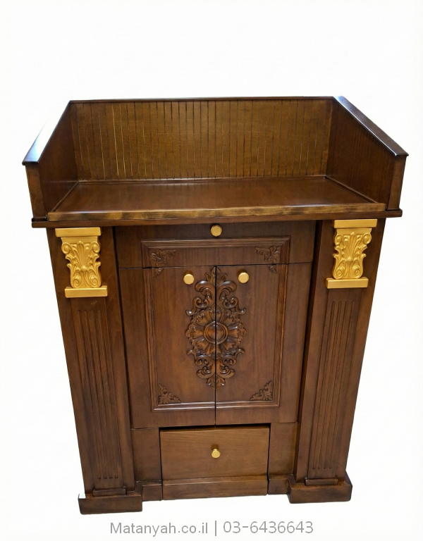 choose **תיבת תפילה מעוטרת בסגנון תימני** From home Matanyah To add a designed and dignified Bimah to your Beit Knesset, serving as a focal point for Tefillah and radiating prestige, quality, and Kedushah.